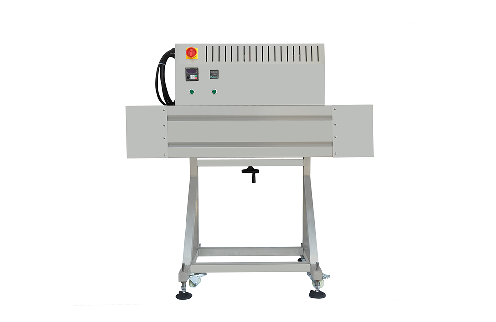 Небольшой туннель используется для запечатывания крышек или горлышек бутылок с помощью термоусадочных пленок, или используется для обертывания/маркировки полных тел небольших бутылок.